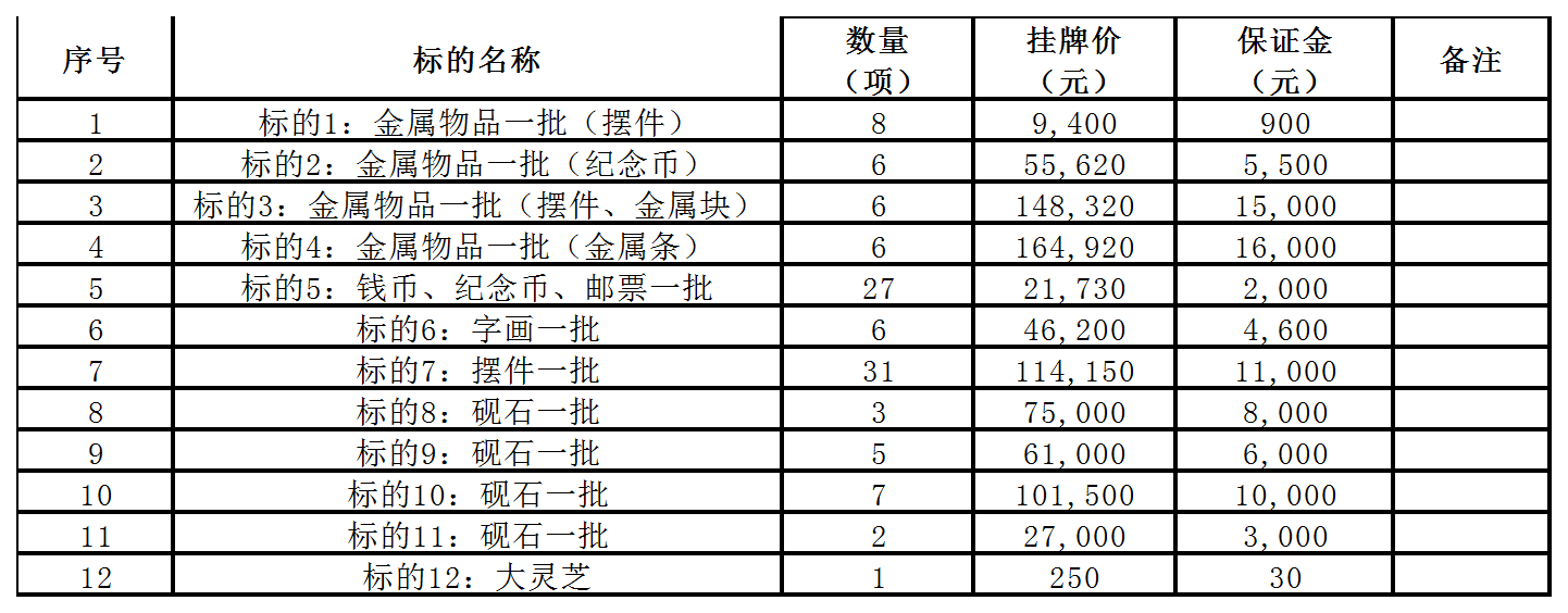 肇慶市監(jiān)察委員會(huì)罰沒財(cái)物一批轉(zhuǎn)讓項(xiàng)目(金屬物品、錢幣、字畫、擺件、硯石、其他類…