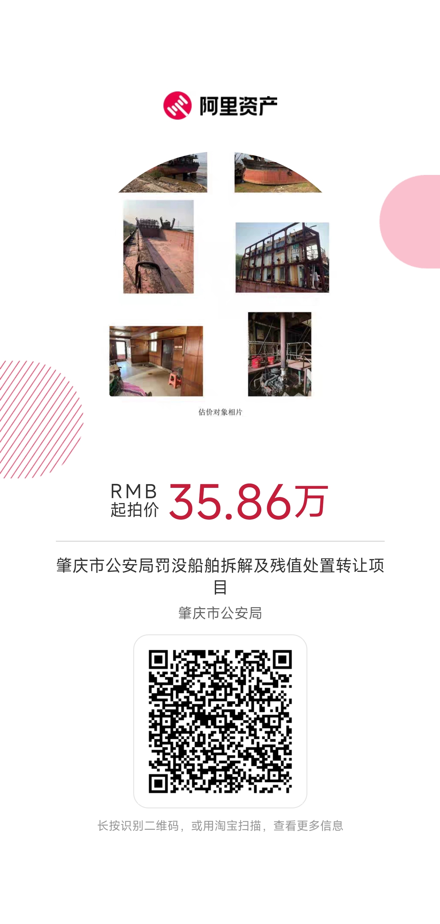 標(biāo)的物:肇慶市公安局罰沒船舶拆解及殘值處置轉(zhuǎn)讓項目。